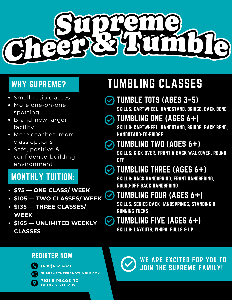 Hi Supreme Families, As we move into the new year, I wanted to share a small update regarding our tumbling tuition that will go...