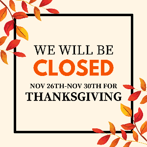 Reminder, we are closed November 26th through November 30th for Thanksgiving break!