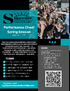 Hi Supreme Families! We are so excited to announce that Performance Cheer Spring Session (January–April 2026) registration is officially OPEN! Performance Cheer is one...